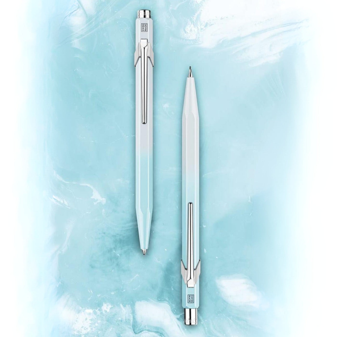 Caran d’Ache unveils Blue Lagoon, a new set comprising an 849 ballpoint pen and mechanical pencil dressed in the pastel colours of a blue lagoon. A tender, sensual gradation of light blue. This pen and pencil duo draws inspiration from polar lagoons and is a special edition colourway.