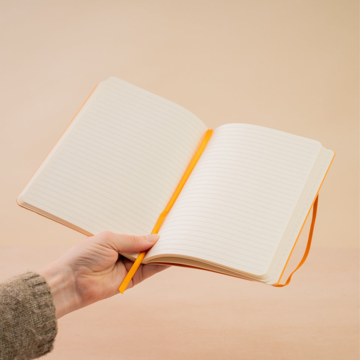 • Orange ribbon marker and elastic closure