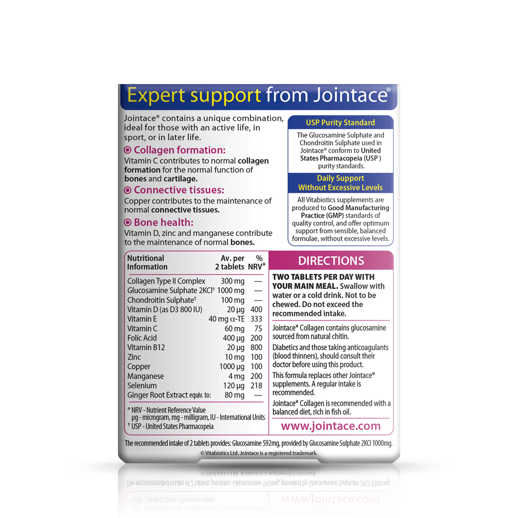 Jointace Collagen combines important trace minerals, Glucosamine and Chondroitin with the highest-quality Type 2 collagen.