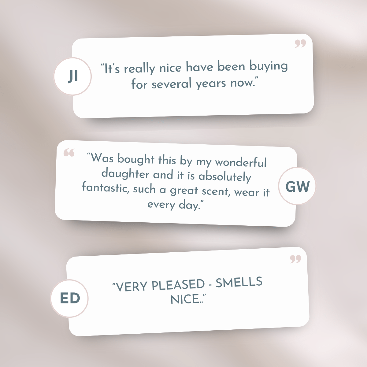 - Middle notes: Lily, Carnation, Violet, Jasmine, Lily-of-the-Valley, Rose